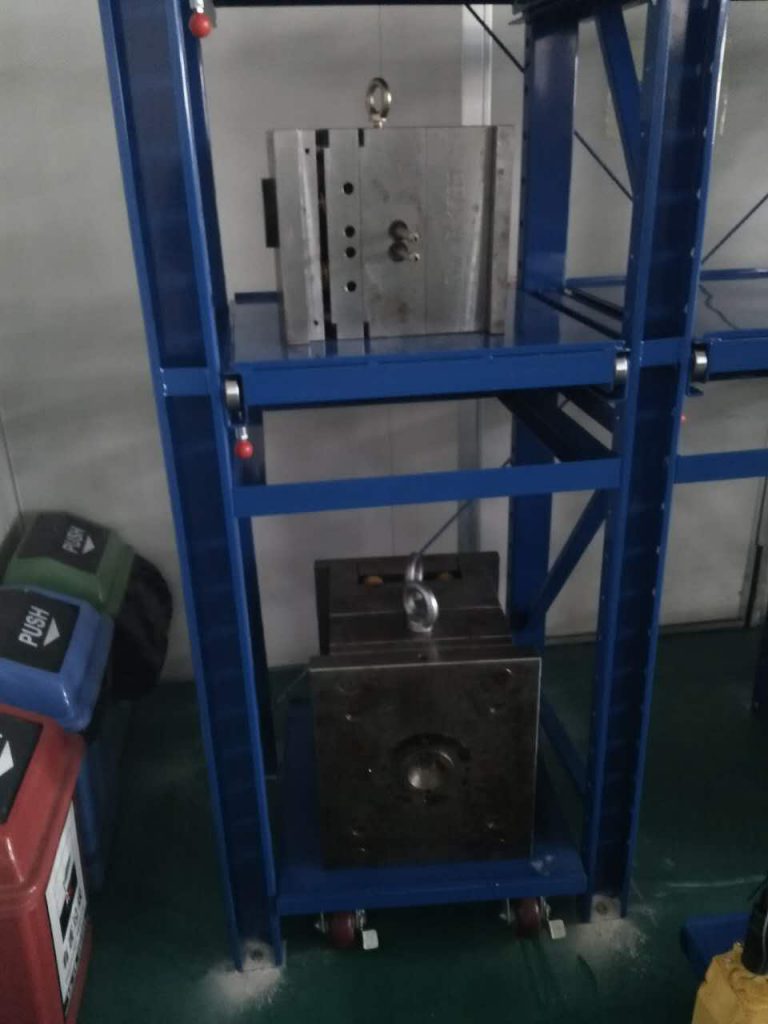 有一位客人找我們定制了一單與眾不同的模具架,底層不選擇使用半抽層板,而是選用小車的形式的模具架。