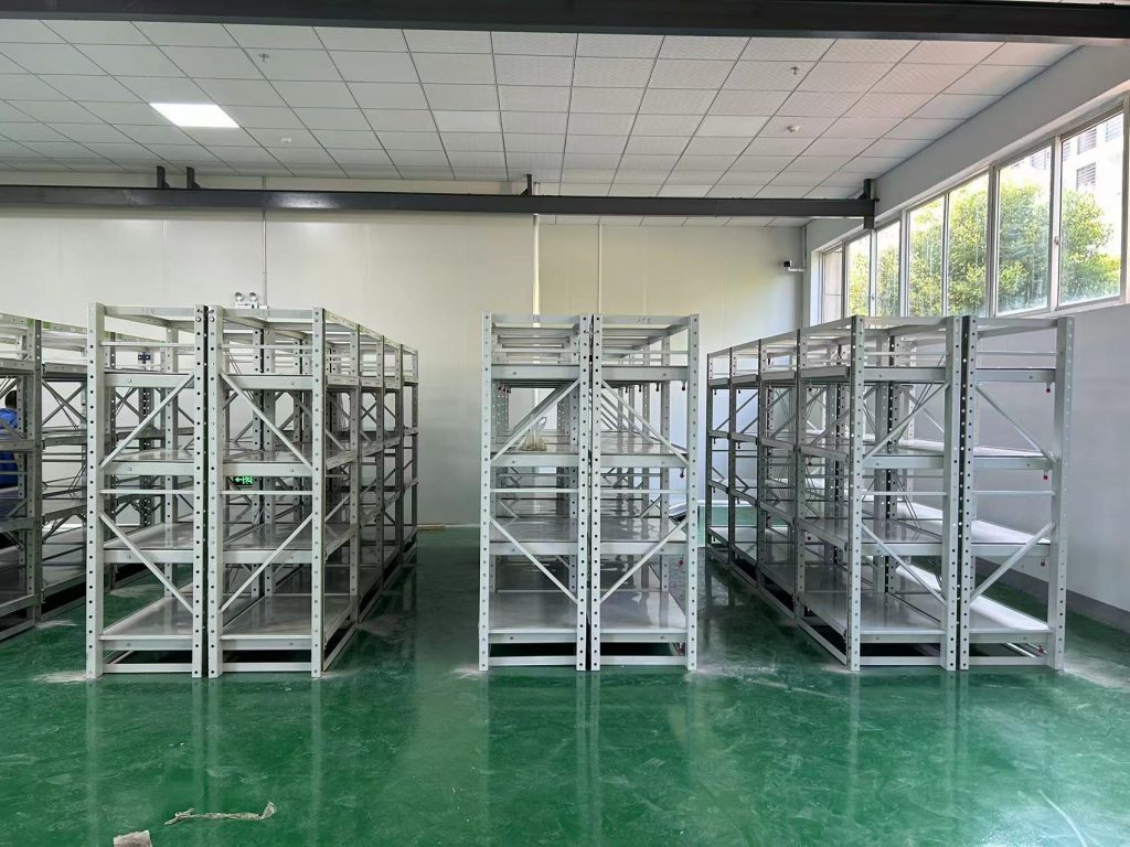 接著,開始搬運和組裝模具架的各個部件。每一個部件都經過嚴格的質量檢測,確保其堅固耐用。安裝人員們小心翼翼地將立柱、橫梁、抽屜等部件一一組裝起來,他們熟練地使用各種工具,擰緊每一顆螺絲,確保模具架的結構穩定可靠。