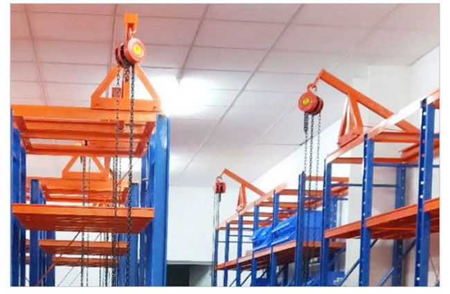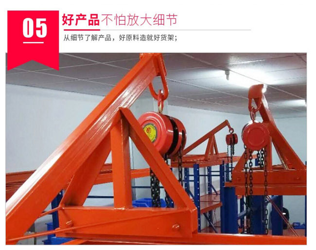 6、模架抽板承載后輕松抽送,上下間隔隨意調整,協同備有的滑車和手動葫蘆可輕松、快捷的完成存取工作;